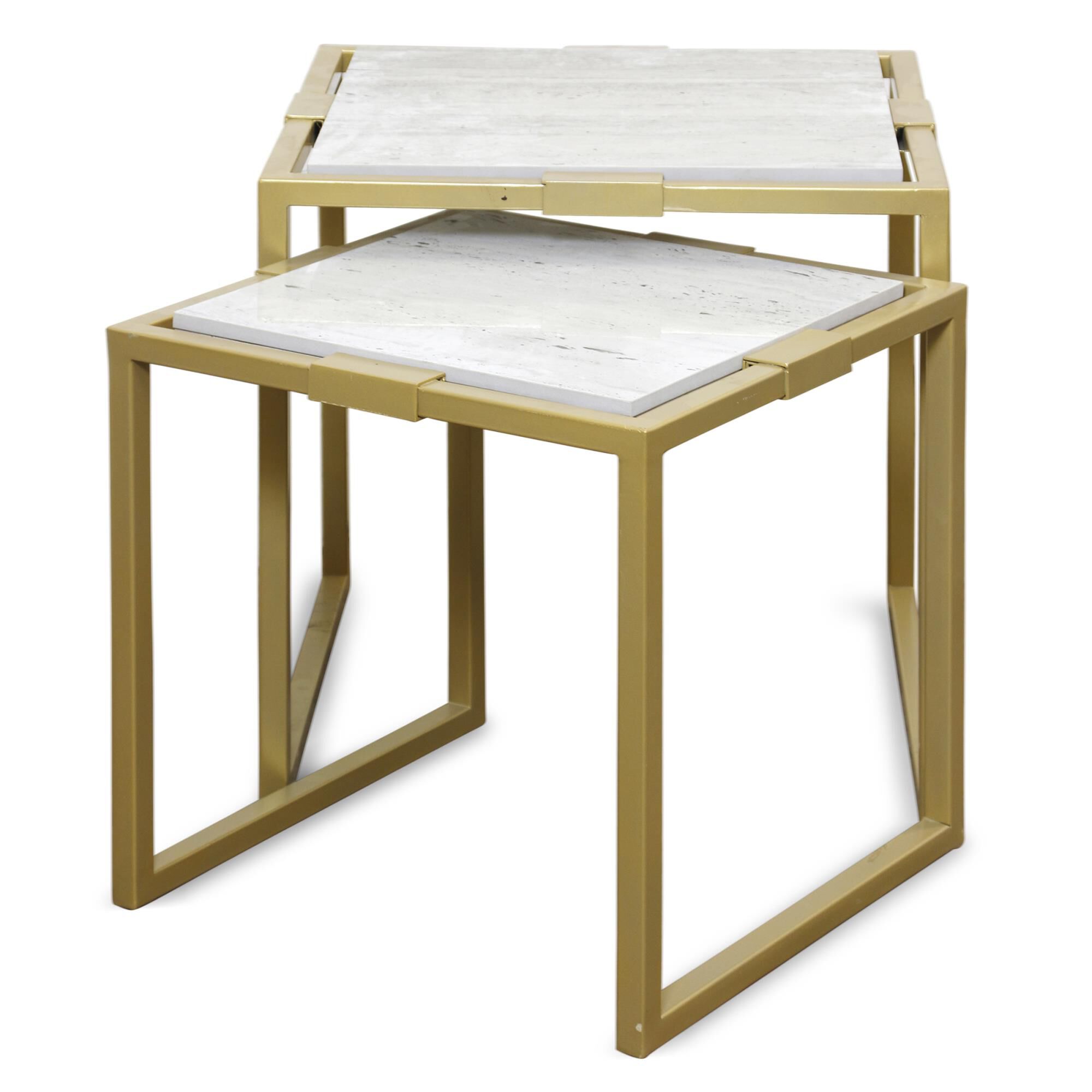 Introducing our marble side table, a functional and stylish addition to your home. This table beautifully combines a striking metal frame with a luxurious marble top, creating a high-end modern aesthetic. Ideal for the living room or dining room, this piece adds an elegant touch and is also a perfect solution for space-saving considerations due to its nesting design.