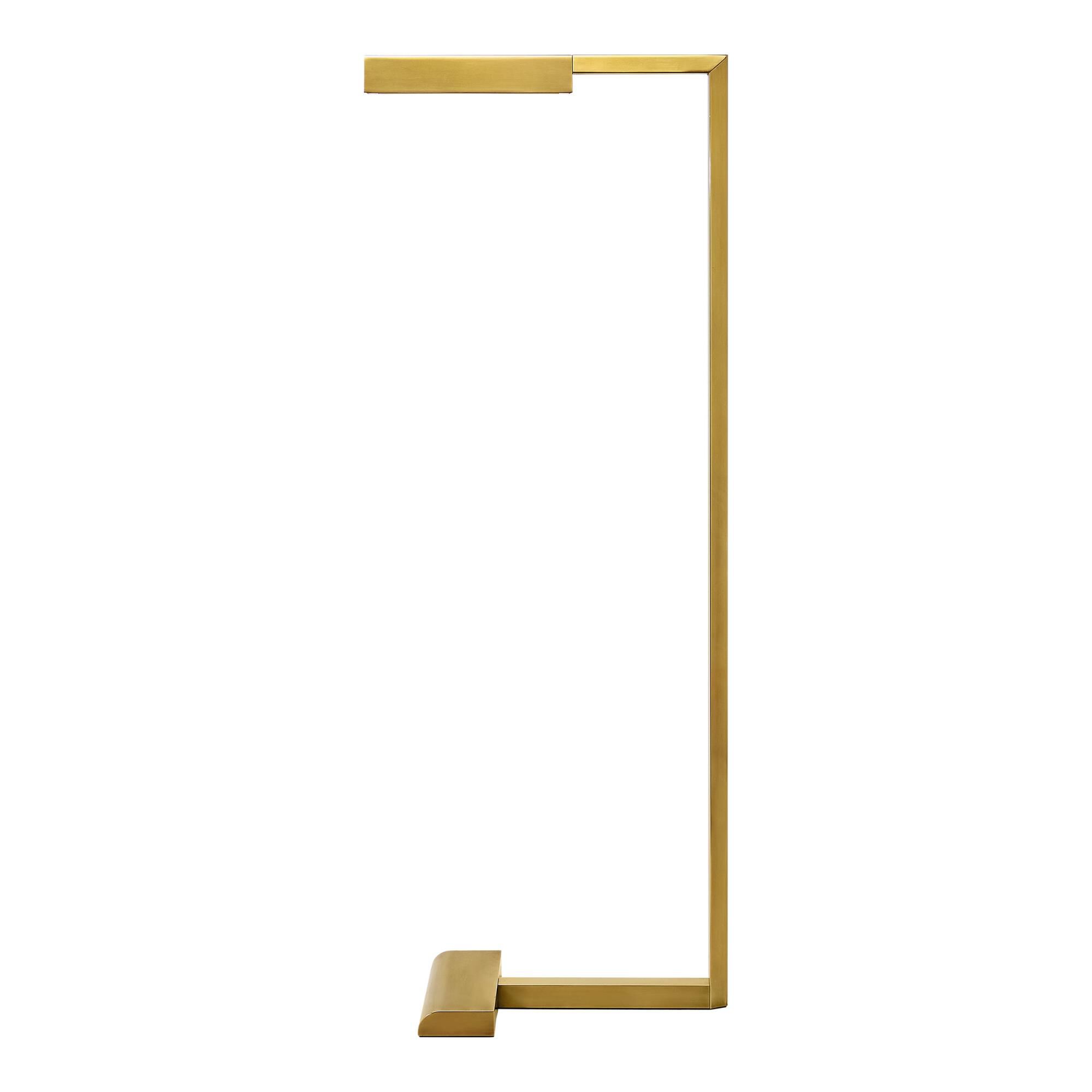 The Dessau 38 Floor Lamp was inspired by the traditional pharmacy lamp and updated with a modern design housing a slim recessed panel of integrated LED lights. Fixture includes an integrated 3-step touch dimmer to conveniently achieve your preferred ambiance. Available in three modern finishes, Nightshade Black, Polished Nickel and a Natural Brass that will patina over time. Offered in two sizes, 38 and 46 inches high. Complete the look with the full collection of Dessau including Picture, Floor and Table Lamps and Linear Suspension.